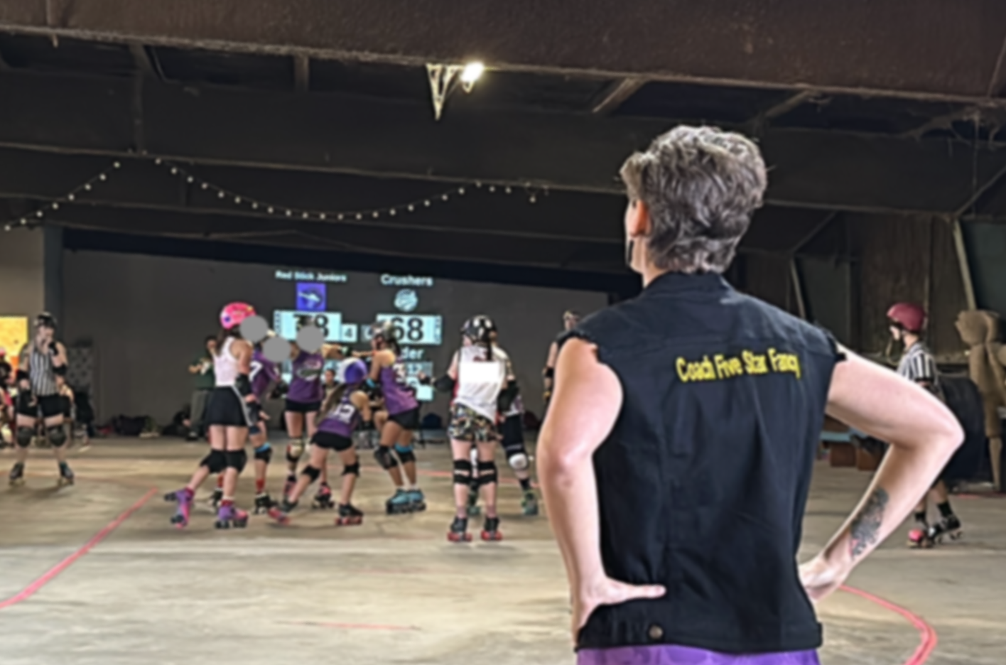 A derby bout is a loud, chaotic place. There are the tweets of the refs’ whistles, the calls from the bench coaches, the booming announcer, the crashes of protective padding, and the grunts of the skaters as they take hits, the crowds cheering....all of which echo through the rinks, courts, and warehouses that host these counter-culture clashes. And amidst all this noise, there is a lot happening on the track. The jammer coming around the turn, the blocker barreling in to clear the line, the skater who just fell, the player called out for a penalty… all of this has to be communicated to each of the teammates working together to get through the jam. Being loud is the only way to be heard over all the noise.